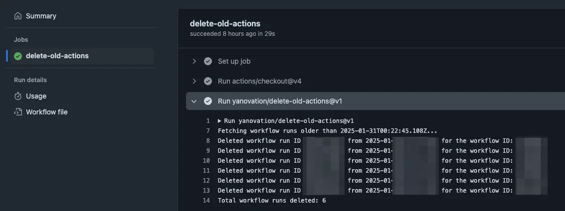 You can use the dry-run option to test the accuracy of the Action before trusting it to delete your runs. And you can use the keep-latest option to keep the latest runs, even if they are older than the days-ago value. This can be useful if you want to keep the latest runs for a specific reason.